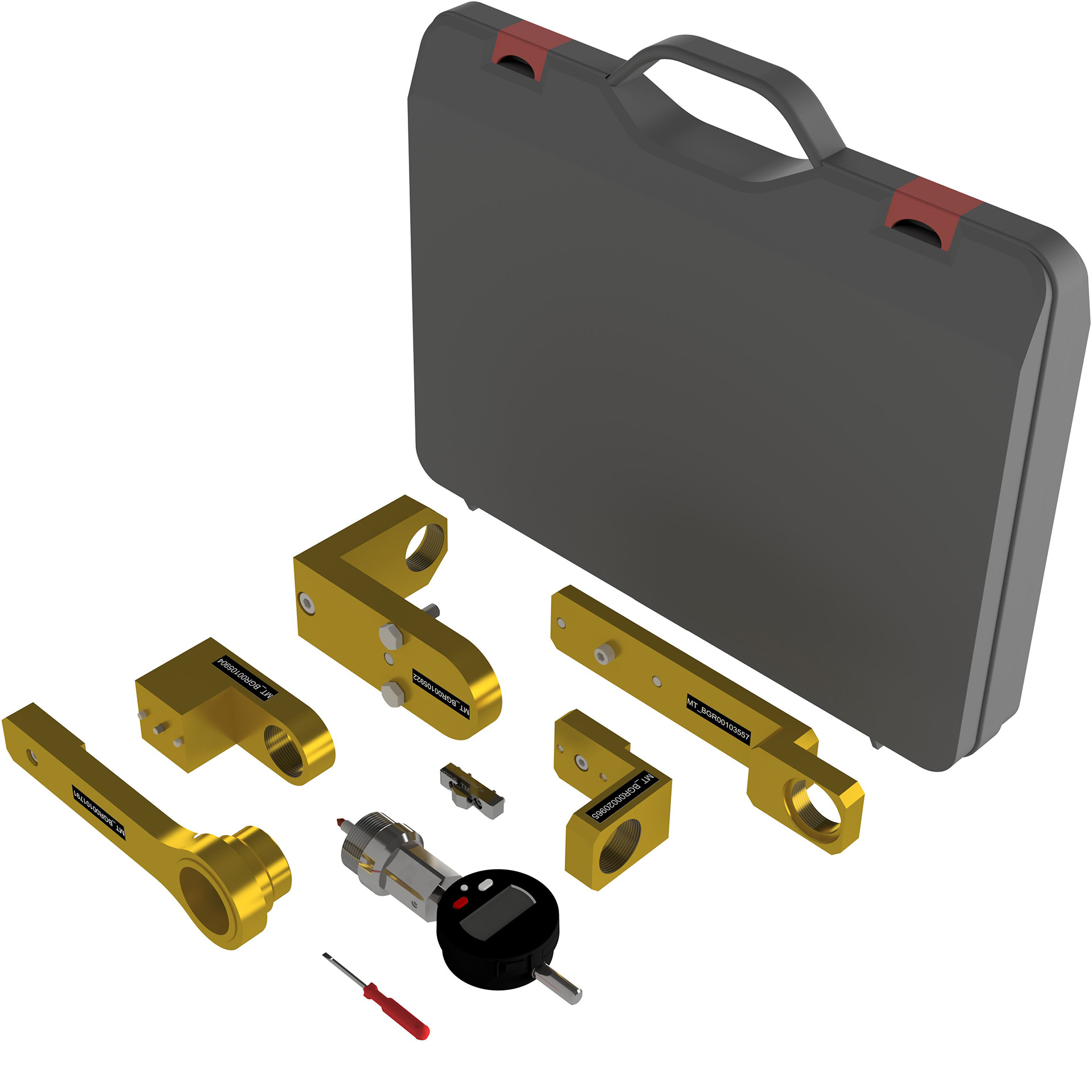 This calibration set contains all the calibration devices required for calibrating the robot mechanics as well as a handy protection case with a special inlay. The case is ideal for storing and transporting these devices.