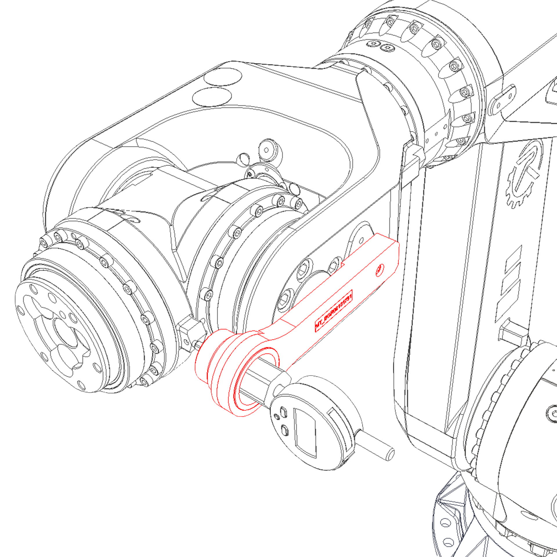This device is used to calibrate our robot mechanics. A defined motor position (encoder value) is assigned to the respective mechanical axis position. The calibration instructions can be found in the download area of the respective robot mechanics.